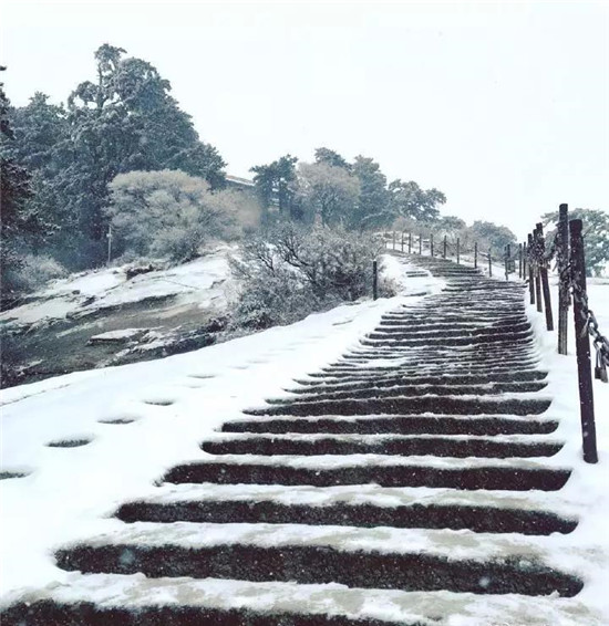 走進華山,你會發(fā)現(xiàn),下過雪的華山,好似山水畫師筆下一副徐徐勾染出的華山畫卷,層次分明、剛?cè)嵯酀?/div>