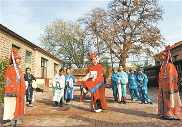 11月13日,河北省益民河北梆子劇團(tuán)的演員在滄縣西官莊小學(xué)為學(xué)生講解戲曲動作。近年來,當(dāng)?shù)胤e極開展戲曲文化進(jìn)校園活動,轄區(qū)內(nèi)多所中小學(xué)引入戲曲課程,以戲曲展演、戲曲名家進(jìn)課堂、戲曲社團(tuán)交流等形式,讓學(xué)生增進(jìn)對中國傳統(tǒng)文化的了解。(記者 牟宇)