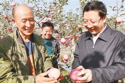近年來(lái),延安蘋果產(chǎn)業(yè)不斷壯大。在寶塔區(qū)廟溝村,薛占海腳一踏進(jìn)果農(nóng)朱懷明的蘋果園就問(wèn):“老朱,你今年蘋果賣了多少錢?”