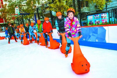校園季節(jié)性冰場(chǎng)自11月19日至次年2月底使用。東城區(qū)教委副主任段勇介紹:“遇到天氣轉(zhuǎn)暖,冰場(chǎng)還會(huì)采取搭蓋遮陽(yáng)棚等方式,盡量延長(zhǎng)使用時(shí)間。”該區(qū)提供配套的基礎(chǔ)滑冰、冰上排舞、隊(duì)列滑、花滑等豐富的冰上課程。史家小學(xué)分校校長(zhǎng)高滿洪說(shuō):“一年級(jí)至六年級(jí)的冰上課程都以基礎(chǔ)課程為主,暫時(shí)不分級(jí),主要是要讓孩子們能夠在真冰上滑起來(lái)。”每塊冰場(chǎng)預(yù)計(jì)能覆蓋萬(wàn)余人次,輻射周邊學(xué)校。