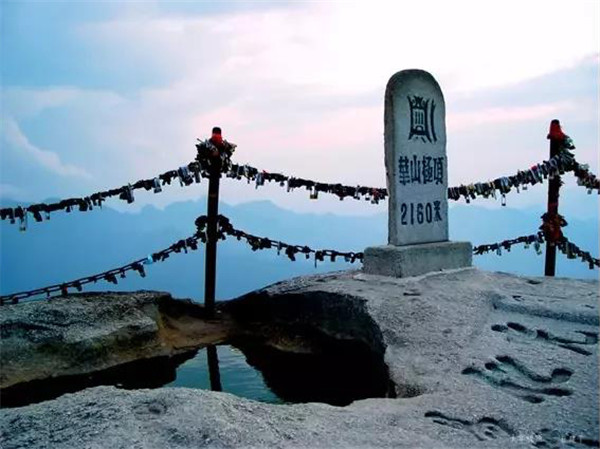 華山是愛情山,“洞房”一詞就源于華山西峰。相傳春秋時期在華山修行的吹簫人簫史和秦穆公的女兒弄玉就是在華山西峰相識相愛,由于山上沒有房屋,就在崖壁上鑿洞成婚,“洞房”一詞由此誕生。 如今來愛情山的游客都有了一個約定俗成的習(xí)慣,“進山先拜廟,相愛神知道”,“一把連心鎖,鎖定你和我”。相愛的情侶,不分年齡,不分國籍,不分信仰,來到山上都要進香上鎖,讓華山見證彼此的真心與愛意,祈求幸福美滿,人生甜蜜。