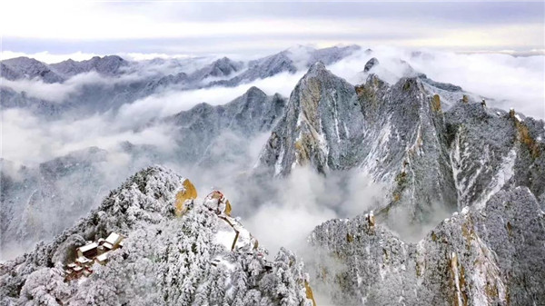 沒有人工雕飾的美,才是真正的美。比如下雪的華山,就是這樣毫無修飾的美,滿山雪白,景色壯麗。