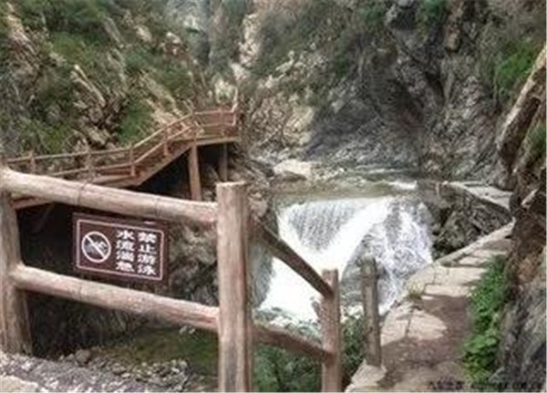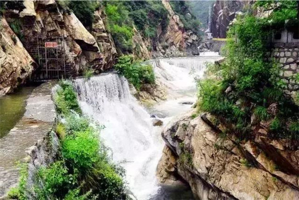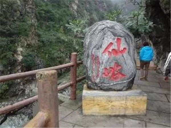 仙峪,又名車箱谷,在華山峪西,與華山峪僅一嶺之隔。傳說古時黃初平、黃初起弟兄在此牧羊成仙,因而得名。仙峪深五十余里,峪道窄狹清幽,山路崎嶇蜿蜒,河流湍急,山石險峻,多處路段鑿崖,加棧凌空通過。進峪五里處,有斜嶺橫阻,令人有谷盡路絕之感,然越嶺橫度,又平添柳暗花明的情趣。