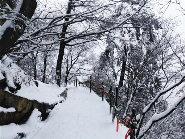 到了北峰和蒼龍嶺,這才是真正的華山,天氣不好,但是一樣很美。到處銀裝素裹,走在蒼龍嶺,這里有“韓愈投書”的故事,左手懸崖,右手深淵,就像這天地間孤獨的俠客,頭頂上傳來雷音陣陣,難道有修道高人在渡雷劫,準(zhǔn)備羽化成仙?