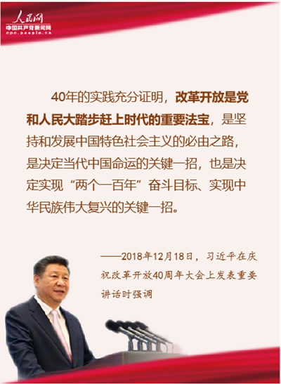 40年的實踐充分證明,改革開放是黨和人民大踏步趕上時代的重要法寶,是堅持和發(fā)展中國特色社會主義的必由之路,是決定當代中國命運的關鍵一招,也是決定實現“兩個一百年”奮斗目標、實現中華民族偉大復興的關鍵一招。