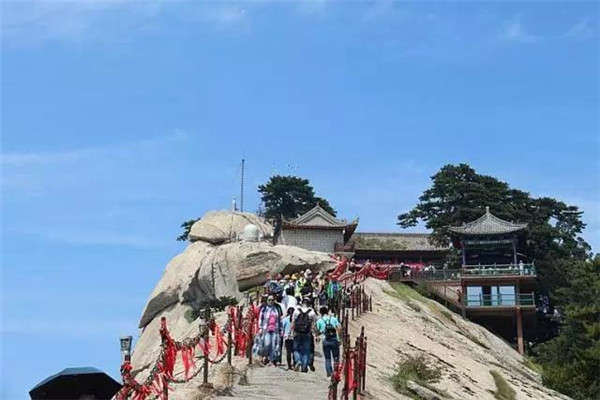 南峰海拔2154.9米,是華山最高主峰,也是五岳最高峰,古人尊稱它是“華山元首”。登上南峰絕頂,頓感天近咫尺,星斗可摘。舉目環(huán)視,但見群山起伏,蒼蒼莽莽,黃河渭水如絲如縷,漠漠平原如帛如綿,盡收眼底,使人真正領(lǐng)略華山高峻雄偉的博大氣勢,享受如臨天界,如履浮云的神奇情趣。
