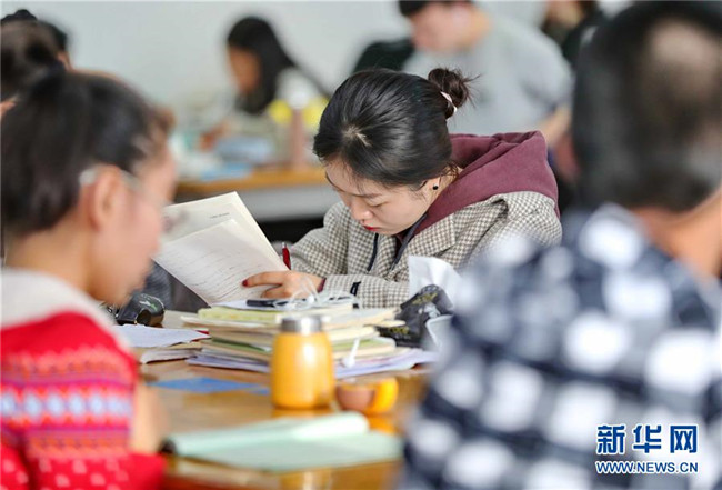 12月20日,在位于河北省秦皇島市的燕山大學(xué),備考考生在學(xué)校圖書館復(fù)習(xí)。 2019年全國(guó)碩士研究生招生考試將于12月22日至24日舉行,廣大考生積極備考,進(jìn)入最后的“沖刺模式”。據(jù)教育部數(shù)據(jù),今年報(bào)考人數(shù)達(dá)290萬(wàn)。 新華社發(fā)(曹建雄 攝)