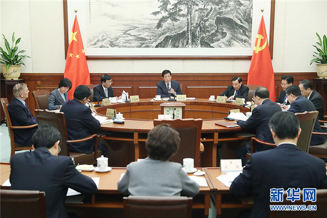 王晨、曹建明、張春賢、沈躍躍、吉炳軒、艾力更·依明巴海、王東明、白瑪赤林、楊振武出席會議并發(fā)言。