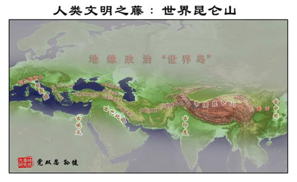 按照中國(guó)傳統(tǒng)的龍脈理論,“亞歐大陸的脊梁”也是“世界島”中央龍脈所在。由于人類(lèi)古文明,包括古華夏、古印度、古波斯、古巴比倫,古希臘,皆源自“亞歐大陸脊梁”,所以也可稱(chēng)其為“世界昆侖山”。著名的“絲稠之路”,也是從中國(guó)大秦嶺到歐洲阿爾卑斯山之路,也可稱(chēng)之為“世界昆侖山之路”。過(guò)去,德國(guó)人首先“發(fā)現(xiàn)”了古老的“絲綢之路”。進(jìn)入21世紀(jì),英國(guó)人又率先以“絲綢之路”的視角,重新著述了“一部全新的人類(lèi)史”。今天,中國(guó)人以“亞歐大陸的脊梁”為視野,將“世界島”連為一體,著述“一帶一路”,著述“大秦嶺到阿爾卑斯山之路”,著述“世界昆侖山之路”,也算是一個(gè)世界“地理新發(fā)現(xiàn)”。
