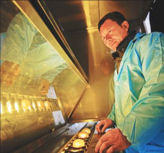每枚鴨蛋都要經(jīng)過嚴(yán)格檢查。 文/攝本報記者劉心楊