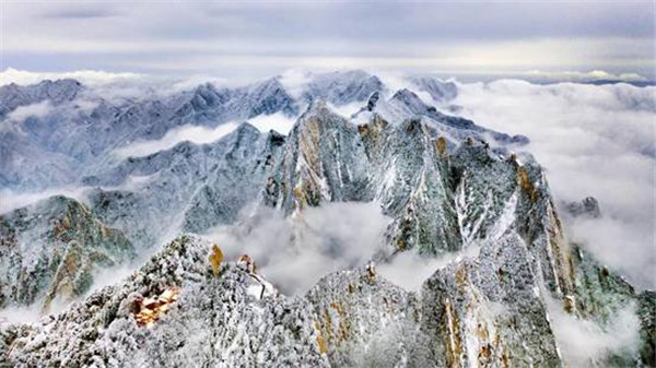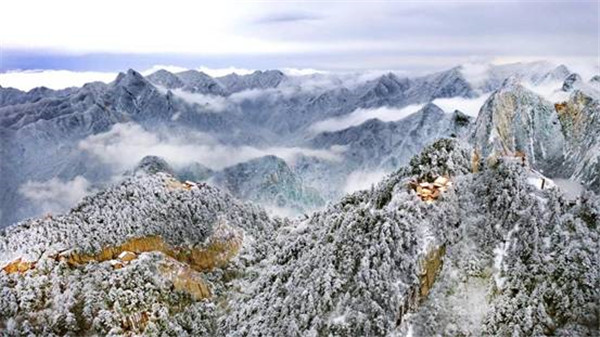 一場(chǎng)大雪將西岳華山變成白雪皚皚的世界,白雪與蒼翠的華山奇松、靈動(dòng)的云海交相輝映,如夢(mèng)如幻;滿山遍野玉樹(shù)瓊花,樹(shù)枝上通體的霧凇晶瑩剔透,繪就冬日畫(huà)境,美不勝收,游人如置身人間仙境。