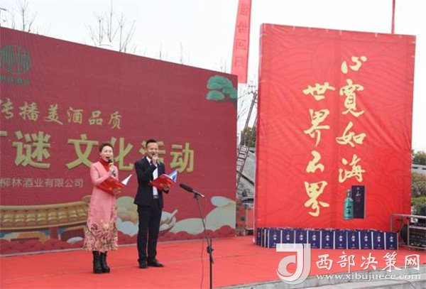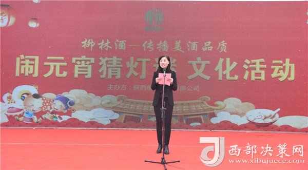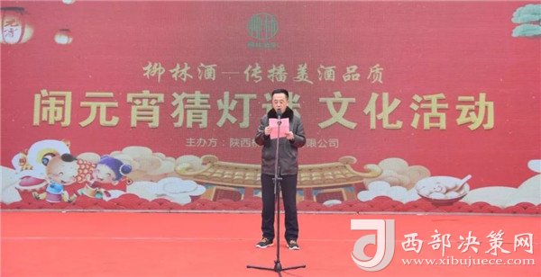 陜西柳林酒業(yè)有限公司副總經(jīng)理周峰發(fā)表講話并向鳳翔父老送上新春祝福和節(jié)日的問候。“三陽開國泰,美哉柳林酒。今天是正月十五,首先我代表柳林酒業(yè)董事長付小銅先生、總經(jīng)理柳林先生及全體員工給現(xiàn)場的父老鄉(xiāng)親、朋友們拜個(gè)晚年,祝各位家庭好、事業(yè)好、身體好心情好、運(yùn)氣好、福氣好、財(cái)氣好、愛情好、朋友好、新的一年一切都好!柳林酒業(yè)主辦的以傳播柳林美酒品質(zhì)為主題的“鬧元宵有獎猜燈謎文化活動”,在此,對前來的各位父老鄉(xiāng)親,各界朋友表示衷心的感謝。本次猜謎活動獎品總價(jià)值15萬元,共設(shè)1000條謎語,只要猜中謎底,關(guān)注“柳林酒業(yè)”,即可獲得獎品。現(xiàn)場更有國家級評酒大師親臨現(xiàn)場,品柳林美酒,共同傳播美酒文化和歌舞表演環(huán)節(jié),相信大家一定會不虛此行,度過一個(gè)難忘的元宵佳節(jié)。