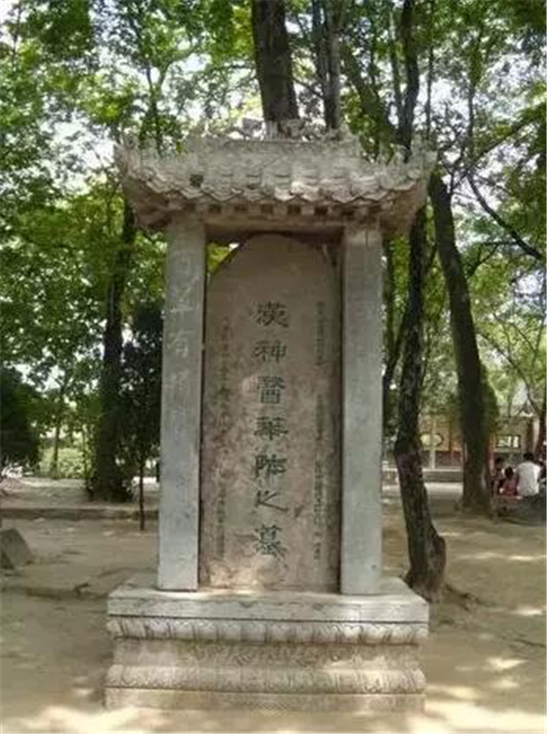 神醫(yī)華佗墓,在石舫東邊的巨石旁,有一《漢神醫(yī)華陀墓》碑。華陀死后并沒(méi)葬于此,但為什么有墓碑呢?據(jù)《后漢書(shū)•華陀傳》記載:當(dāng)年華陀有一好友名魯先生隱居在華山白麓龕,華陀常來(lái)華山探友,且常留住這里,和魯先生一起作五禽游戲,一起采藥、制藥濟(jì)世。他在平時(shí)總愛(ài)穿戴魯先生的道袍方巾,腰系一個(gè)大藥葫蘆,下山為百姓診治疾病。被曹操殺害后,冤魂直來(lái)華山,向好友訴屈。魯先生驚覺(jué),即下山探詢,獲得確實(shí)噩耗后,魯先生把華陀衣物用具在紅巖村西修了一座衣冠冢,并且嚎啕痛哭送葬?,F(xiàn)墓已無(wú)存,也不知何時(shí)何人將墓碑移至玉泉院內(nèi)。