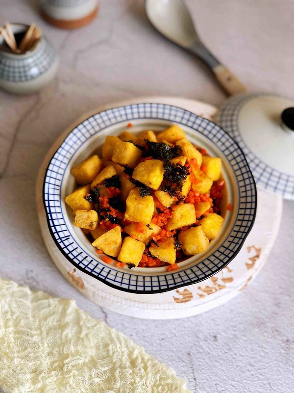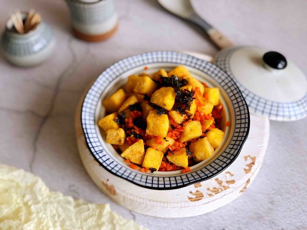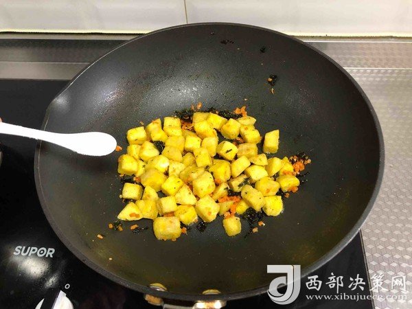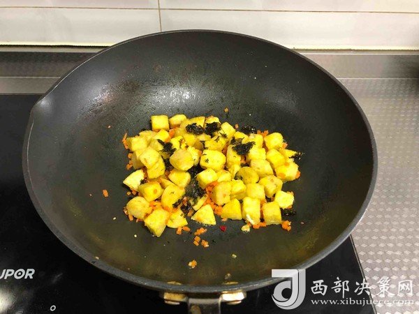 7.放入海苔碎,炒勻