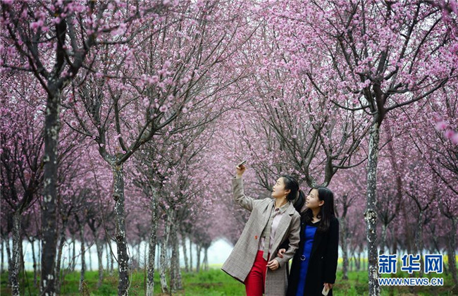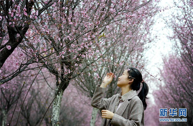 3月19日,游人在陜西勉縣新街子鎮(zhèn)觀賞美人梅。近日,陜西省漢中市勉縣新街子鎮(zhèn)數(shù)十畝美人梅開(kāi)放,吸引游人前來(lái)踏春賞花。 新華社記者 劉瀟 攝