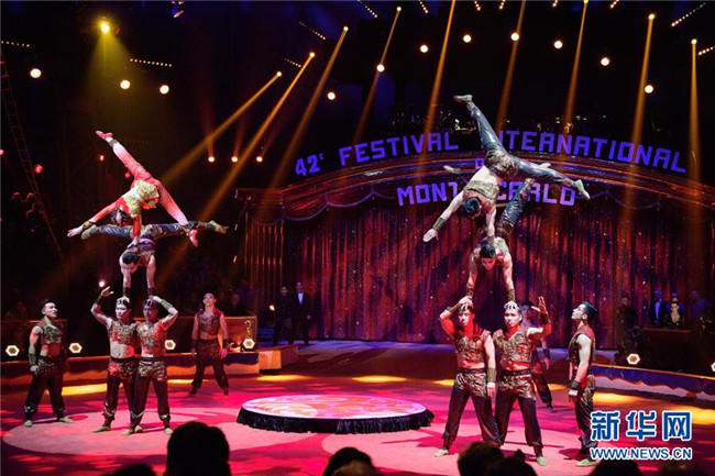 這是2018年1月20日,中國(guó)上海雜技團(tuán)在摩納哥蒙特卡洛馬戲節(jié)上表演。 新華社記者 陳益宸 攝
