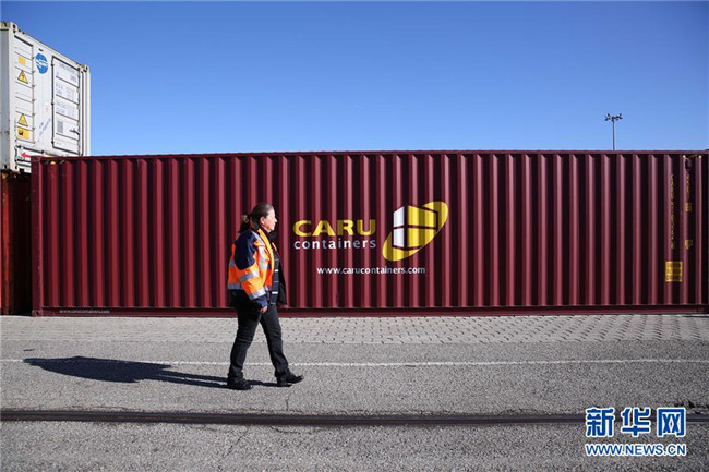 這是2019年3月5日,裝載有中國(guó)商品的集裝箱從中國(guó)武漢發(fā)出后,經(jīng)由中歐班列運(yùn)輸?shù)诌_(dá)法國(guó)里昂。 新華社記者 唐霽 攝