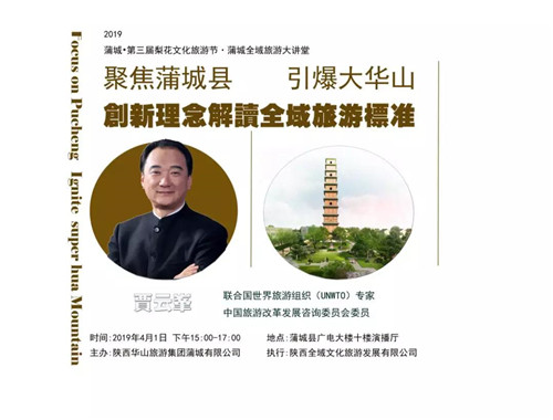 內(nèi)容:邀請(qǐng)賈云峯先生( 聯(lián)合國世界旅游組織(UNWTO)專家,中國旅游改革發(fā)展咨詢委員會(huì)委員、亞太旅游協(xié)會(huì)(PATA)中國專家委員會(huì)秘書長)就“全域旅游”全國發(fā)展形勢(shì)解讀、“大華山”旅游線如何在新形勢(shì)下發(fā)展與開拓新型的創(chuàng)意文化旅游 、如何挖掘、打造和宣傳新時(shí)代蒲城全域旅游文化等進(jìn)行專業(yè)解讀。