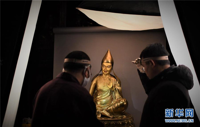 布達(dá)拉宮管理處的工作人員對(duì)佛像進(jìn)行數(shù)字化存檔(2018年11月16日攝)。 新華社記者 普布扎西 攝