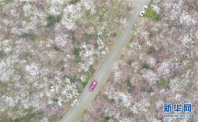 仲春時(shí)節(jié),位于貴州省貴安新區(qū)櫻花觀光園內(nèi)的櫻花競(jìng)相綻放,如白雪般的櫻花海吸引眾多游客前來(lái)賞花觀光。