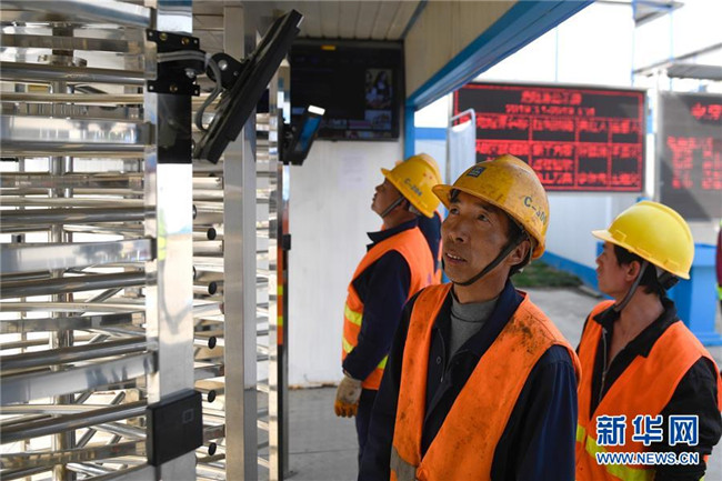 3月26日,工人在實(shí)名制通道使用人臉識(shí)別技術(shù)進(jìn)入“浙江智慧之門”項(xiàng)目工地。新華社記者黃宗治攝
