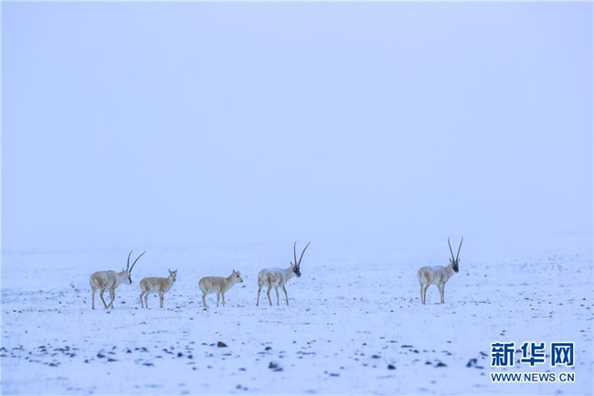 這是在阿爾金山國(guó)家級(jí)自然保護(hù)區(qū)內(nèi)拍攝的藏羚羊(3月31日攝)。 新華社記者 胡虎虎 攝