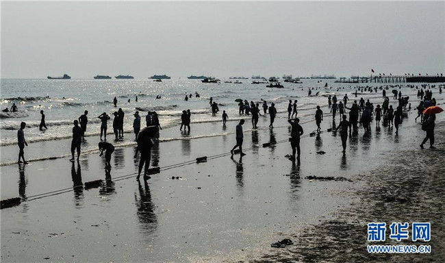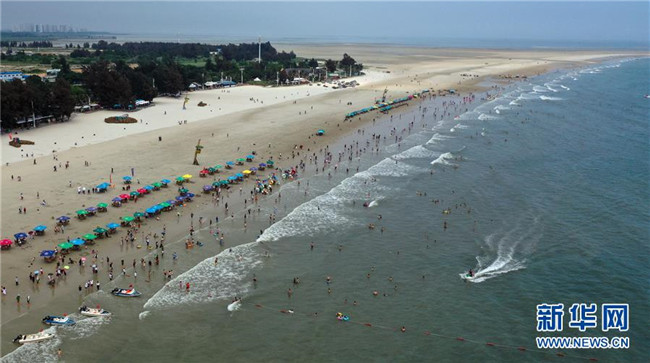 近日,隨著氣溫回升,眾多游客來到廣西北海銀灘旅游,享受碧海藍天帶來的樂趣。 新華社記者 張愛林 攝