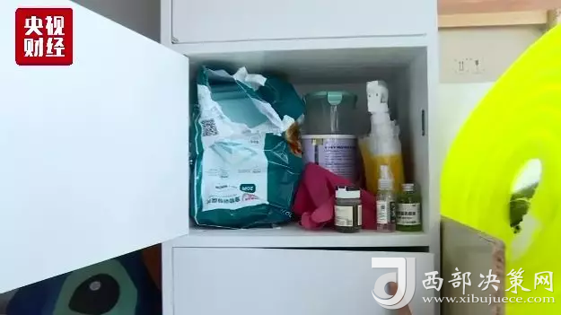 從玩具,到罐頭,再到保健品,以及狗生病的藥,甚至狗的牽引繩都有近20根。細算之下,這一整柜寵物用品價格逼近4000元。