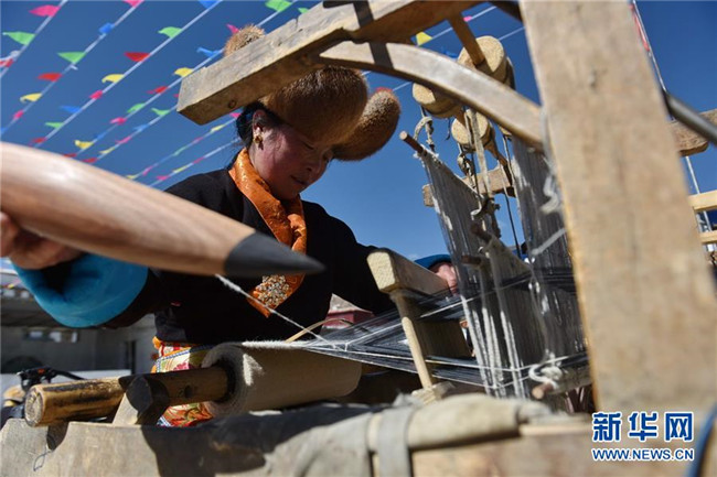 西藏貢嘎:氆氌制作技能比賽迎“五一”