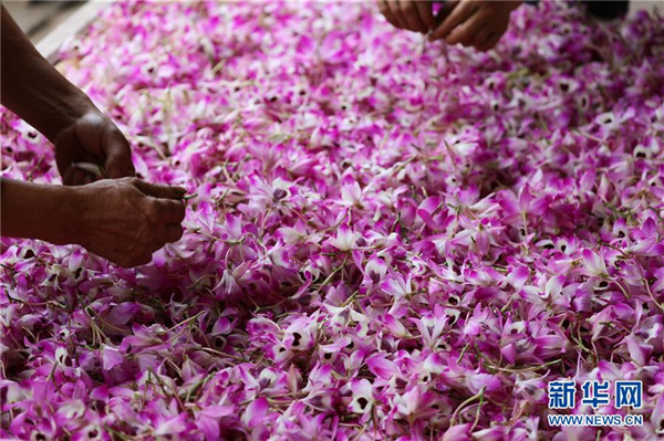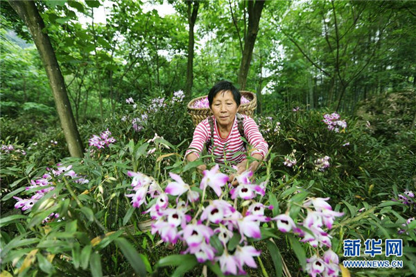 近日,貴州省赤水市的金釵石斛花陸續(xù)進入盛花期,當?shù)剞r(nóng)民忙著采摘鮮花,供應各地市場。金釵石斛是一種名貴中藥材,有“仙草”之稱。近年來,赤水市多個鄉(xiāng)鎮(zhèn)積極推進農(nóng)業(yè)與鄉(xiāng)村旅游等產(chǎn)業(yè)融合,采取“合作社+支部+農(nóng)戶”模式,鼓勵農(nóng)民種植金釵石斛,助力脫貧攻堅和鄉(xiāng)村振興。新華社發(fā)(王長育 攝)