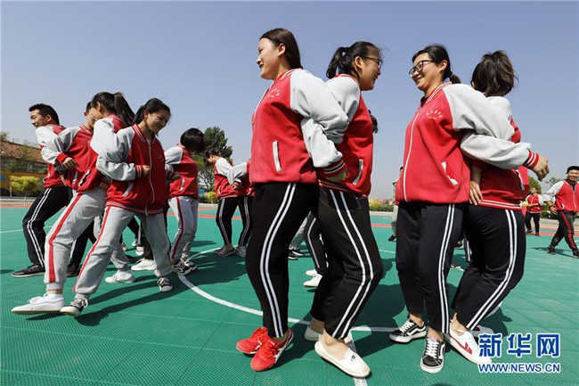2019年高考臨近,多地高中開展形式多樣的減壓活動,幫助學生釋放緊張情緒,以平和、樂觀的心態(tài)迎接高考。新華社發(fā)(賈敏杰 攝)