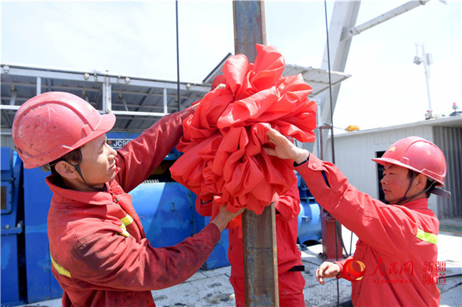 5月14日,準東鉆井公司90001鉆井隊技術(shù)員正在檢查鉆頭。當天,由中國石油西部鉆探準東鉆井公司承鉆的集團公司重點風險井呼探1井,在新疆呼圖壁縣境內(nèi)鳴笛開鉆,標志著新疆準噶爾盆地南緣東段深層勘探工作正式拉開序幕。