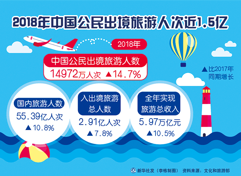 近年來,隨著我國經濟社會發(fā)展,人民生活水平得到顯著提高,國民旅游休閑生活更加精彩,出境旅游成為新的時尚。圖為2018年中國公民出境旅游相關數據。 新華社發(fā) 李棟/制圖
