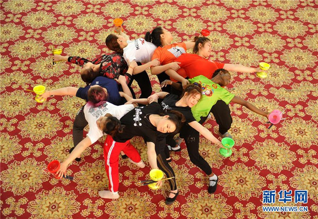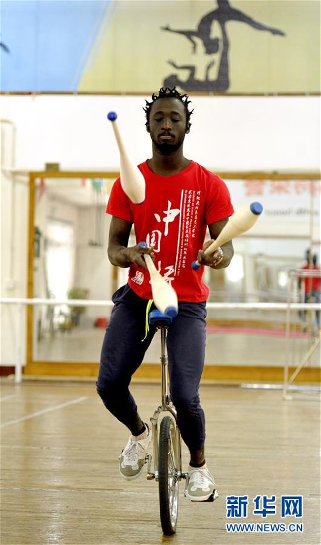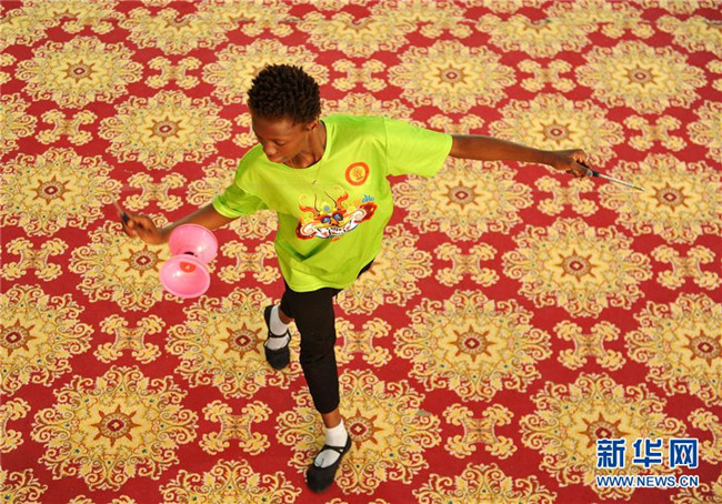 5月20日,在吳橋雜技藝術(shù)學(xué)校,留學(xué)生練習(xí)雜技。 新華社發(fā)(苑立偉 攝)