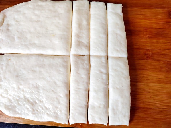 5.輕拍面團(tuán)按扁,搟成長薄餅狀。