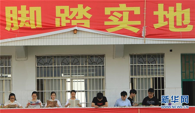 6月4日,在湖南省衡陽縣第一中學(xué),高三學(xué)生在教室外的走廊看書。新華社發(fā)(曹正平攝)