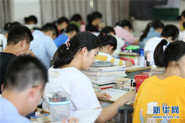 6月4日,在浙江省衢州二中,高三學(xué)生在教室復(fù)習(xí)備考。新華社發(fā)(劉惠震攝)