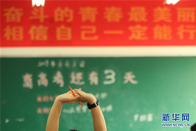 6月4日,在湖南省衡陽縣第一中學(xué),一名高三學(xué)生自習(xí)間隙伸腰活動(dòng)。新華社發(fā)(曹正平攝)