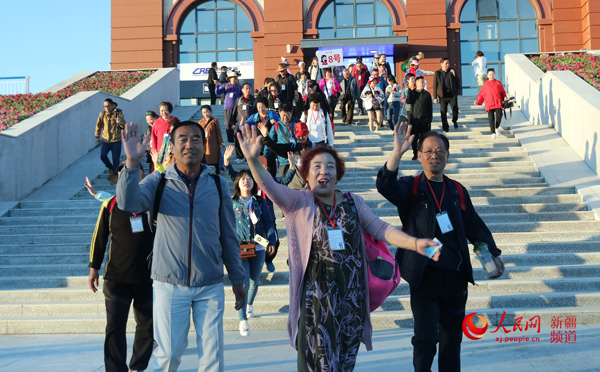 首趟遼寧援疆旅游專列抵達塔城市,送來了克塔鐵路第一批旅客。文博 攝