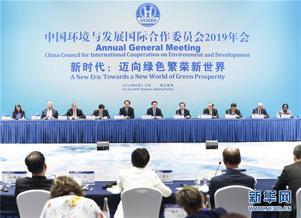 6月4日,中共中央政治局常委、國務(wù)院副總理、中國環(huán)境與發(fā)展國際合作委員會主席韓正在浙江省杭州市出席國合會2019年年會并講話。新華社記者龐興雷攝