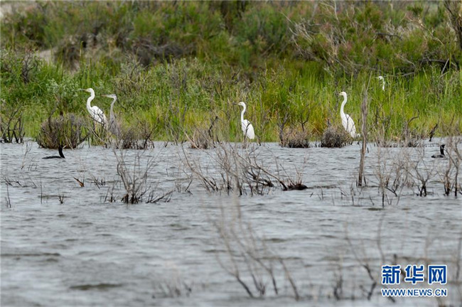 6月9日,白鷺在新疆烏倫古湖國(guó)家濕地公園休憩。 新華社記者 丁磊 攝