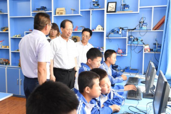 石泰峰十分關(guān)心農(nóng)村學(xué)校運(yùn)用“互聯(lián)網(wǎng)+”破解師資力量和優(yōu)質(zhì)教育資源短缺問題。在西夏區(qū)鎮(zhèn)北堡鎮(zhèn)華西中學(xué)和賀蘭縣洪廣鎮(zhèn)金山小學(xué),石泰峰走進(jìn)科普活動室、錄播室和教師辦公室,了解視頻遠(yuǎn)程教學(xué)和在線互動課堂開展情況。他說,“互聯(lián)網(wǎng)+教育”是促進(jìn)教育公平的有效手段,要通過互聯(lián)網(wǎng)技術(shù),一方面把區(qū)內(nèi)優(yōu)質(zhì)教育資源輸送到偏遠(yuǎn)地區(qū)、農(nóng)村學(xué)校,一方面引進(jìn)發(fā)達(dá)地區(qū)先進(jìn)教育理念、教學(xué)技術(shù)、數(shù)字資源為我所用,提升教育教學(xué)水平。
