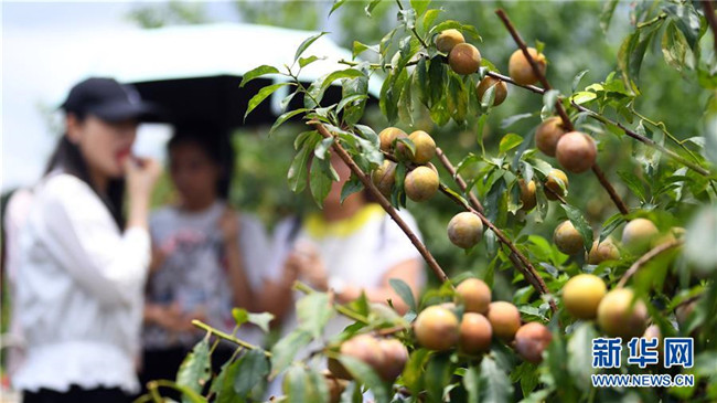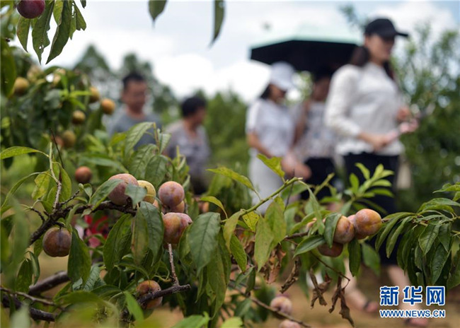 近日,廣西欽州市欽南區(qū)那麗鎮(zhèn)殿艮村種植的三華李進入收獲季,吸引游客前來采摘。目前,殿艮村種植的“扶貧李園”共帶動16戶貧困戶實現(xiàn)增收。 新華社記者 張愛林 攝