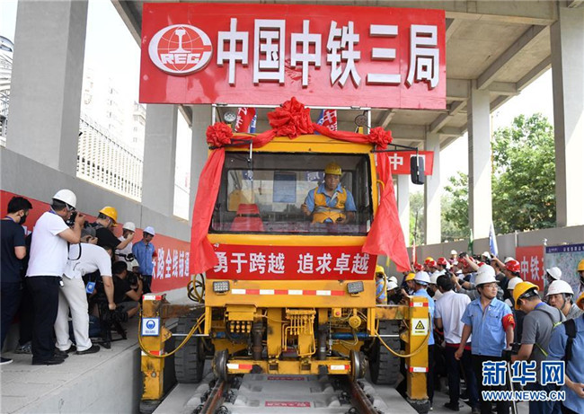 12日上午,京張高鐵最后一根鋼軌在中鐵三局WZ-500型無砟軌道鋪軌機(jī)牽引下準(zhǔn)確落在清華園隧道的枕木上,精調(diào)之后,軌距誤差在正負(fù)1毫米之內(nèi)。被譽(yù)為中國鐵路發(fā)展“集大成者”、智能高鐵示范工程的京張高鐵實(shí)現(xiàn)全線軌道貫通。