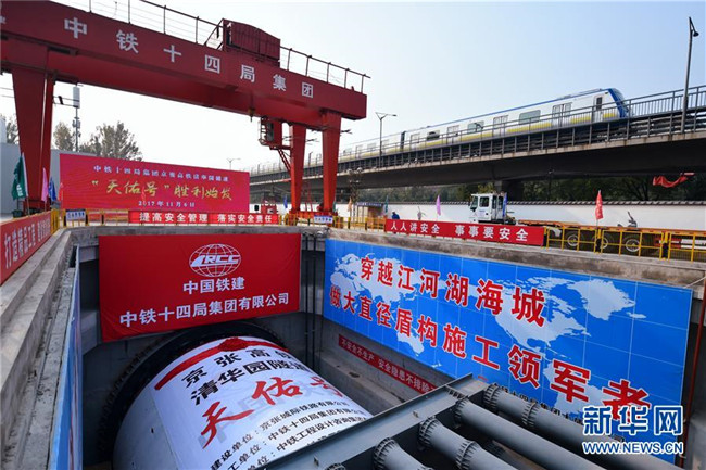 京張高鐵清華園隧道“天佑號”盾構(gòu)機(jī)始發(fā)掘進(jìn)(2017年11月6日攝)。新華社記者 張晨霖 攝