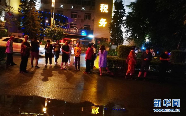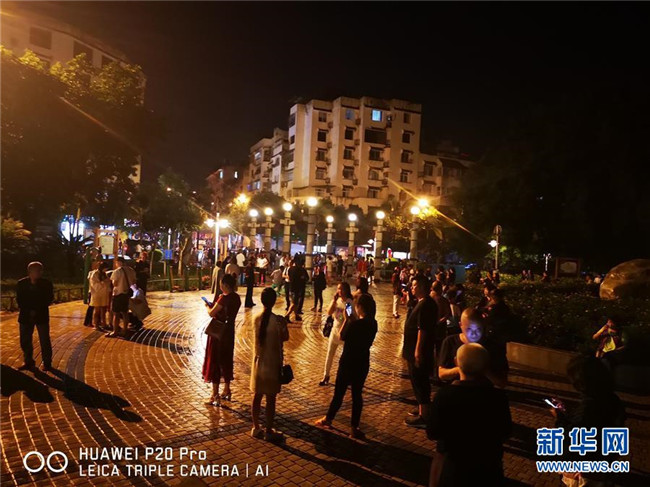 6月17日,在長寧縣城竹韻廣場,震后人們來到安全地帶。新華社發(fā)(侯莉 攝)