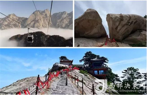 華山著名景區(qū)多達(dá)210余處,有凌空架設(shè)的長(zhǎng)空棧道,三面臨空的鷂子翻身,以及在峭壁絕崖上鑿出的千尺幢、百尺峽、老君犁溝等,其中華岳仙掌被列為關(guān)中八景之首。