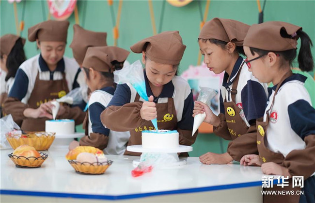 6月26日,內丘縣實驗小學學生在烘焙課堂制作糕點。 新華社記者 朱旭東 攝