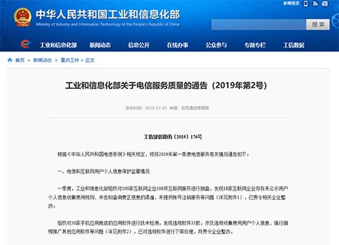 通告稱,一季度,工信部對(duì)100家互聯(lián)網(wǎng)企業(yè)106項(xiàng)互聯(lián)網(wǎng)服務(wù)進(jìn)行抽查,發(fā)現(xiàn)18家互聯(lián)網(wǎng)企業(yè)存在未公示用戶個(gè)人信息收集使用規(guī)則、未告知查詢更正信息的渠道、未提供賬號(hào)注銷服務(wù)等問題,工信部已責(zé)令相關(guān)企業(yè)整改。