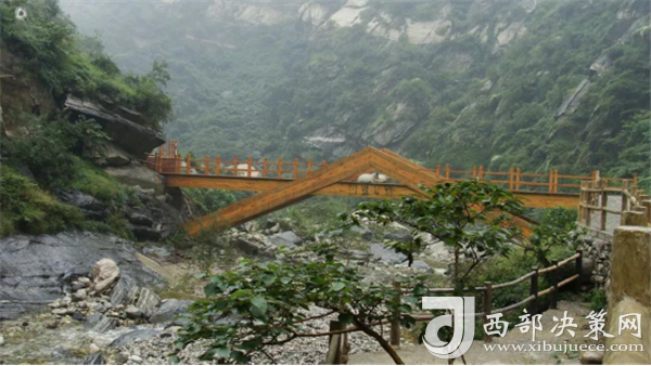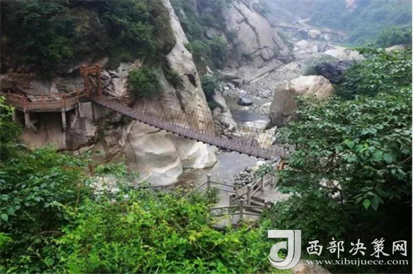 踏進(jìn)峪口,頭頂是遮天蔽日的綠色,四周水聲潺潺,鳥(niǎo)鳴悅耳,空谷幽靈,沉靜自然,涼爽的山風(fēng)夾雜著花草的芳香,瞬間就滋潤(rùn)了燥熱的心情。迎著溪谷逆水而上,山的奇特與水的靈秀交織在一起,伴著水聲,綿延著向更遠(yuǎn)處伸展。若有情致,卷起褲腿,或穿上沙灘鞋,或赤足,踏著被溪水長(zhǎng)久沖刷平整光滑的大石頭,任由清涼通透的溪水撫摸雙足,沁心入骨,仿佛拾回了童年的歡樂(lè),煩擾憂(yōu)愁全無(wú)蹤影。臨水而筑的棧道,全程依水而行,曲徑通幽,每轉(zhuǎn)一道彎,都是一幅新景。